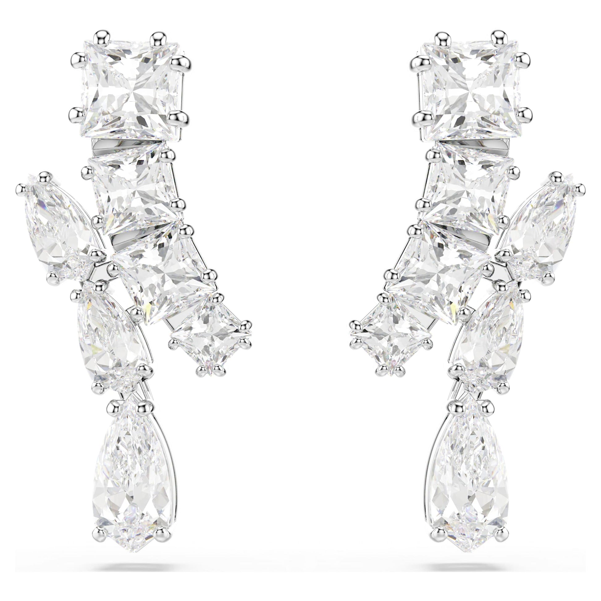 Orecchini pendenti Swarovski Matrix Taglio misto, Bianchi, Placcato rodio