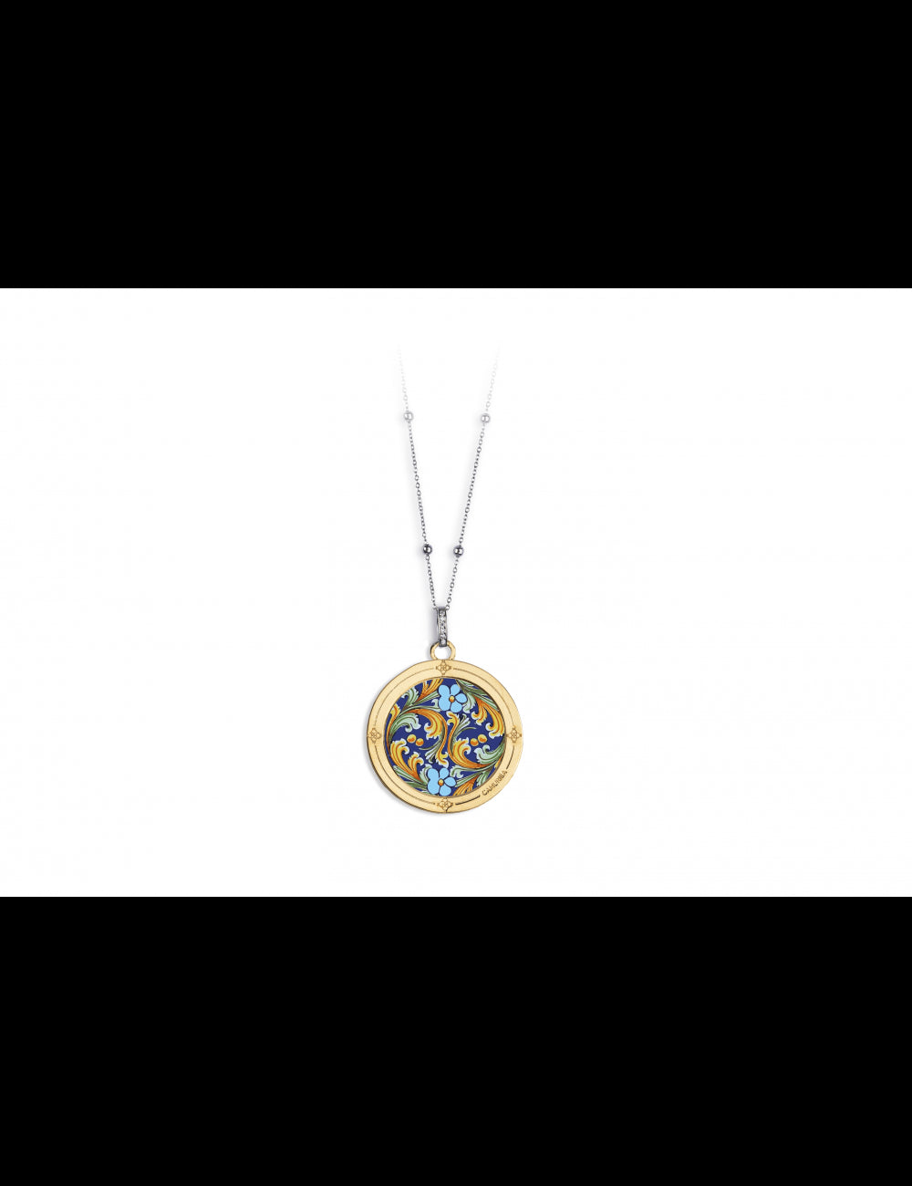 COLLANA CAMURRÌA U GIRASULI COLLANA LUNGA IN ACCIAIO PENDENTE PVD ORO STAMPA FIORI - CJ.CL06S.2