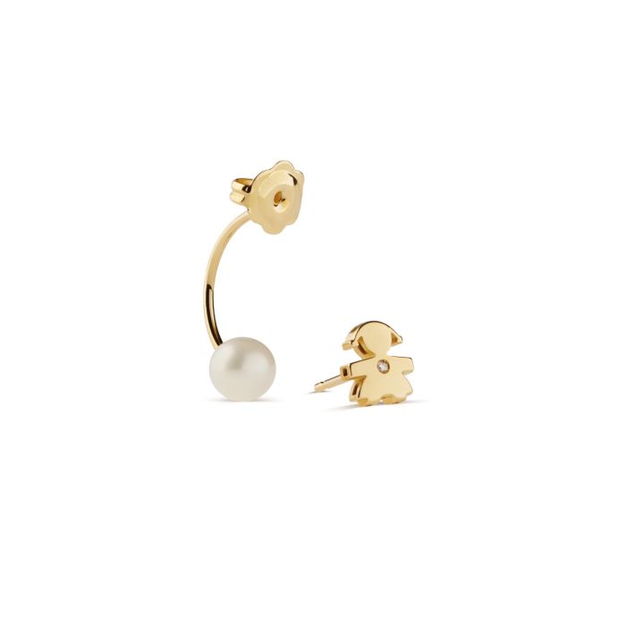 Monorecchino Lebebé Le Perle Oro Giallo Perla e Bimba Diamante