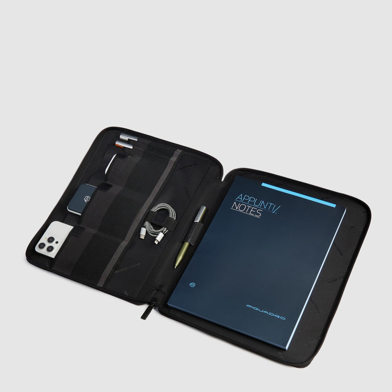 Portablocchi Piquadro S136 Portablocco Formato A4 Portapenne Tessuto Inserto Pelle Nera