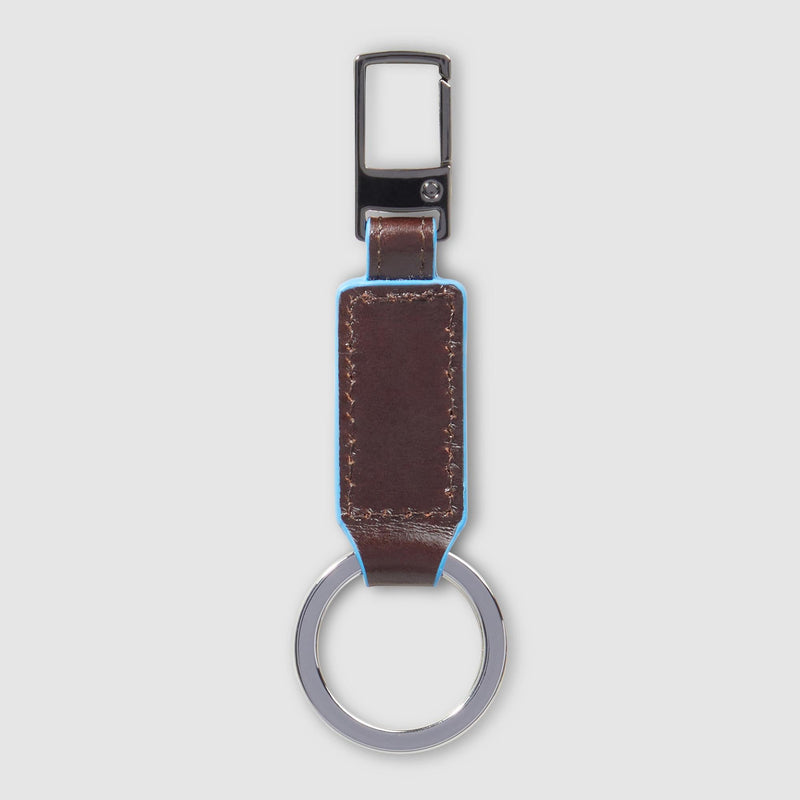 Portachiavi Piquadro Uomo Moschettone Inserto Pelle Mogano
