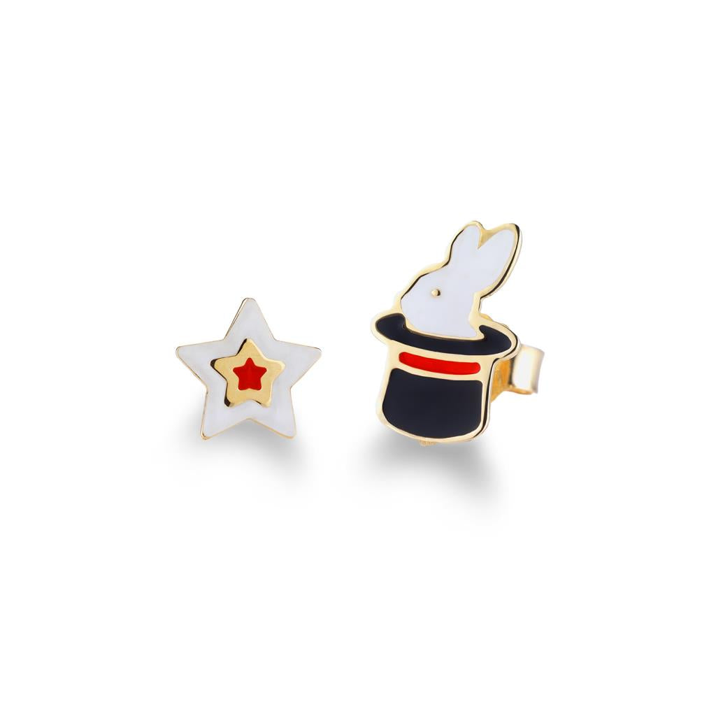 Orecchini Lobo leBebé Primegioie Oro Giallo Circo Cilindro Coniglio Stella Smalto Multicolor