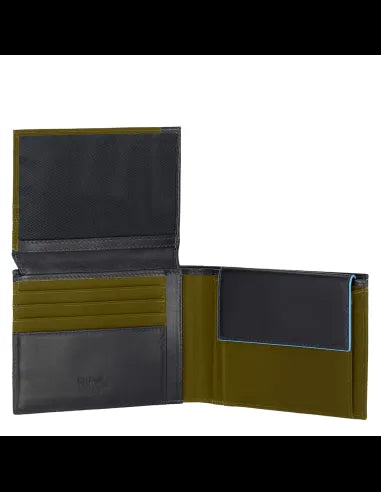 Portafogli Piquadro Portafoglio Uomo Portamonete Portadocumenti In Tessuto Verde Inserti Pelle